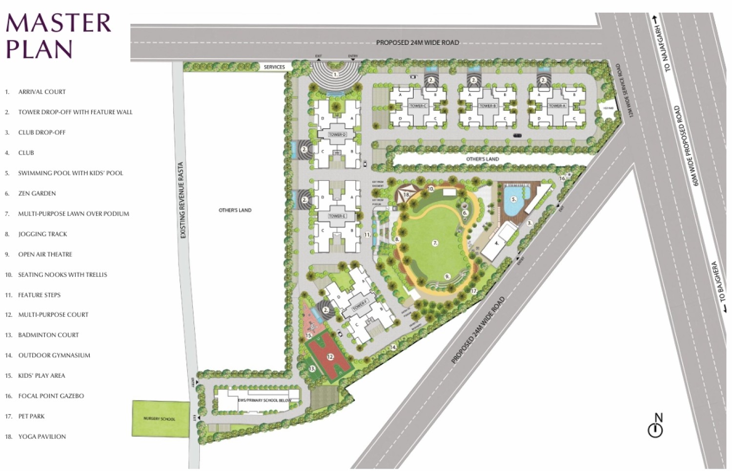 Designed with safety in mind, the unique podium architecture places all amenities, including the Clubhouse, on an elevated platform, effectively eliminating disruptions from vehicular traffic.